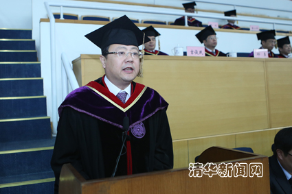 在熱烈的掌聲中,校長陳吉寧發表了題為《勤思善言篤行》的講話。陳吉寧代表學校,向畢業生表示衷心祝賀,并向對同學們給予悉心教導和關懷的各位老師、親友致以誠摯的敬意。陳吉寧在講話中指出,清華是培養君子的地方,君子“訥于言而敏于行”、“恥其言而過其行”,行勝于言是每一名清華人的內在品質。