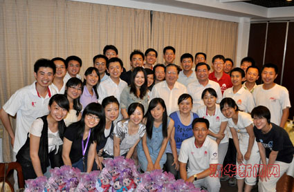 圖為校長顧秉林、校黨委書記胡和平與志愿者同學們合影留念。
