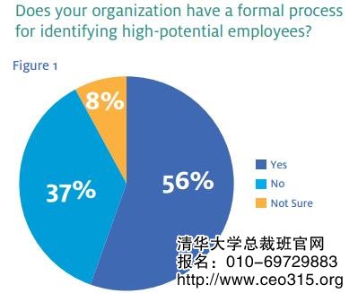 在我們的調查中,56%的參與者表示其組織對高潛力人才身份有正式確立程序,37%的參與者表示其組織有非正式確立程序(例如非正式的告知等),僅有8%的參與者不確定其組織是否有這樣的機制。