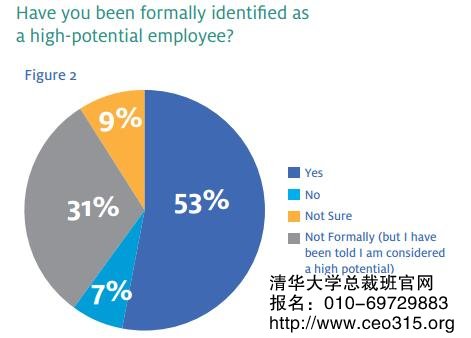 53%的受訪者表示自己的高潛力人才身份得到了組織的正式確認,32%表示得到了組織的非正式確認。9%的參與者表示不確定,僅有7%的受訪者認為自己并未被組織確立為高潛力人才。