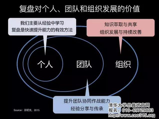 很多優秀企業,如聯想、華為、萬達、英國石油公司等,多年的實踐表明,復盤的確是可以幫助我們每個人快速從經驗中學習的結構化方法,也是帶團隊、增強團隊協同作戰能力、實現知識萃取與共享的有效途徑,可以有效地推動組織發展與持續改善。