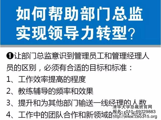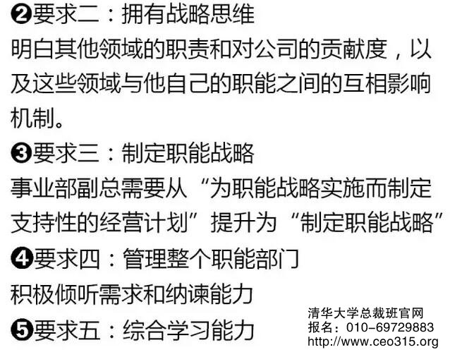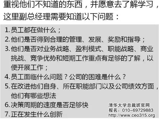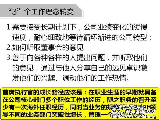 這第二階段,許多人會產生一個誤區:管理他人和管理經理人員之間幾乎沒有差別。但其實部門總監與一線經理在領導技能、時間管理能力和工作理念方面有著重要的區別,如果沒有實現這個階段的領導力轉型,總監們只是敷衍了事,將給公司帶來嚴重損失。部門總監負責的是公司中人員最集中的部門,完成絕大部門的生產性任務其結果直接與公司的產品和服務緊密相連?梢韵胂,部門總監如果不能勝任自己的崗位,工作質量和工作效率將會受到多大影響!事實上,他們的工作很大程度上決定著公司的執行力和競爭優勢。