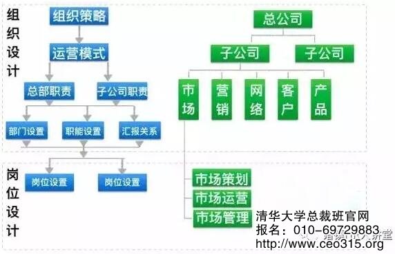 從整個組織的遠景和使命出發,設計一個基本的組織模型。然后根據具體的業務流程需要,設計不同的崗位。