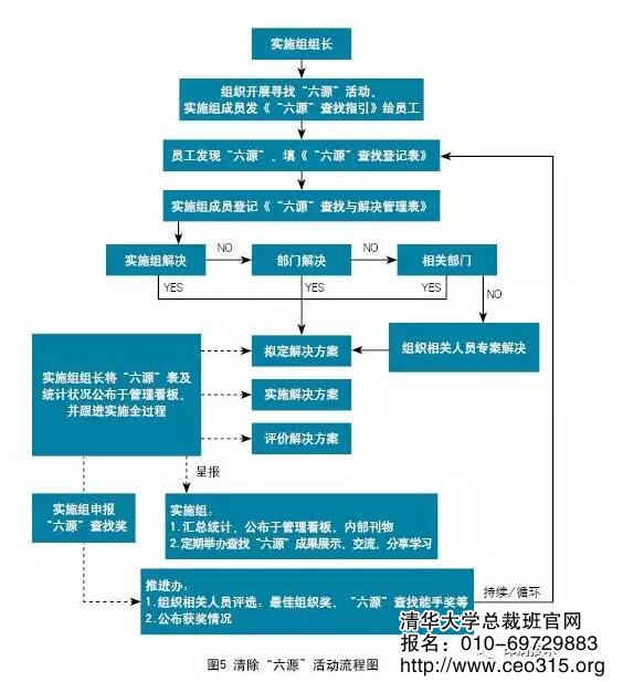 全面生產維護(TPM)是以提高設備綜合效率為目標,以全系統的預防維護為過程,全體人員參與為基礎的設備保養和維護管理體系。經過專業老師的培訓,我公司精益管理推進辦有針對性地開展了清除“六源”活動,制定了活動方案和流程,發布了《清除“六源”活動制度》。清除“六源”活動流程圖如圖5所示。