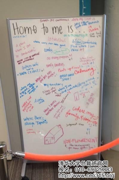 一分鐘之后,我們走過了一塊白板,上面的標題是“對我來說,家就是……”,然后下面寫滿了員工們充滿熱情的想法。