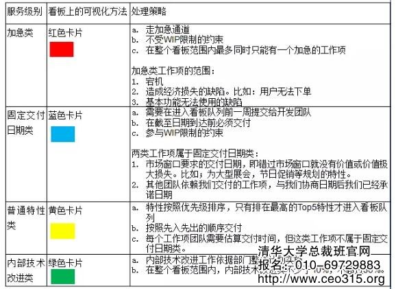 之前的文章獨家詳解:如何用系統思考方法導入看板中簡單提到了服務級別。服務級別的概念,由看板方法的創始人David J.Anderson提出。比如,在生活中,你坐飛機,頭等艙、商務艙和經濟艙所享受的服務等級是不同的。做頭等艙、商務車的旅客有VIP休息室,而經濟艙的旅客大家坐在候機大廳里;檢票的時候,頭等艙、商務車的旅客先檢票登機,經濟艙的旅客后登機;座位布局上,頭等艙、商務艙的座位更舒適和寬敞,而且有專門的空姐提供服務,而經濟艙的座位擁擠,整個經濟艙共有空姐服務。