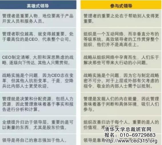 你們企業的領導風格是英雄式還是參與式的?請根據下面的對比來判斷。