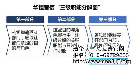 談起公司戰略目標與任務如何落實在部門或者崗位中的方式,企業常常使用的方式是目標分解法以及部門職責描述法兩種形式,目標分解法則可以讓公司發展方向直接逐級分解,可以相對清晰地將公司階段性發展目標與方向傳遞給部門以及崗位,而部門職責描述是以部門為中心,將所完成的各項主要職責羅列的過程。但是,由于公司戰略是從高層要求出發,提出關鍵目標與要求,而部門職責卻是從部門視角出發,描述自己在干什么,這兩者“一配合”,矛盾就出來了,就好像兩個單位生產了兩個齒輪一般,總有一點不匹配,甚至出現“齒輪互傷”的局面。實際管理中,也出現了各種問題,比如部門之間職責不清、職責重疊、無人履職、無法追究責任等。針對這一問題,華恒智信提出的“三級職能分解圖”明確了各部門及各崗位的定位與存在價值,有效避免了部門之間及部門內部的職責重疊、工作遺漏等問題,清晰界定了各部門及各崗位的角色分工。這一工具對企業在梳理部門及崗位的工作職責中有很強的借鑒意義。
