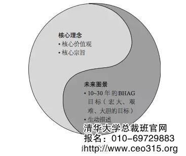 精心構建的愿景由兩大要素組成,即核心理念和未來圖景。在此,我們可以借用中國太極中的陰陽概念:核心理念好比我們愿景方案中的“陰”,定義著我們主張的理念和我們存在的理由;“陰”恒定不變,與“陽”——即未來圖景,形成互補。未來圖景就是我們渴望成為、渴望得到和渴望創造的——即需要通過重大變革及進步來實現的東西。