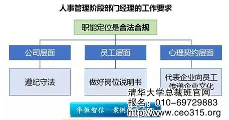 在人事管理階段,部門經理的職能定位是合法合規。具體而言,部門經理的職能體現在三個方面:公司層面、員工層面、心理契約層面。