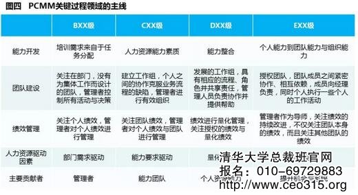 這些主線在不同的等級下,關注的焦點不同。人力資源能力提升的驅動因素與主要貢獻者也各不相同。(如圖四)