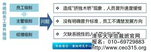 隨著企業的迅速發展,在人力資源管理上也逐漸暴露出一些問題,其中,員工晉升通道一直較為混亂,很多員工反映不知道自己的發展前景在哪里,也因此導致了一些優秀人才外流、員工工作積極性差等問題;诖耍摷瘓F公司邀請人力資源專家——華恒智信進駐企業,幫助企業設計科學、合理的員工晉升路徑。