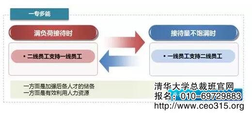 對于“一專多能“的模式,主要是指全體人員都要具有一線服務人員的基本技能,這些技能是作為任何崗位上崗前的基本考核技能,目的是在滿負荷接待時,可以保證服務人員的及時補充,在接待量不飽滿時,重返到原崗位工作。