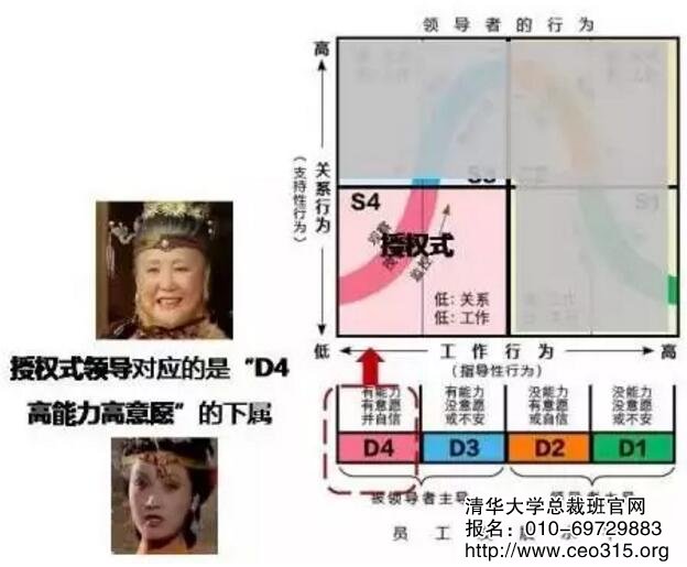授權式領導對應的是“D4高能力高意愿”的下屬,王熙鳳做事效率高,不怕出風頭,也擅長處理復雜的人際關系,一看就是“授權式領導”的不二之選。