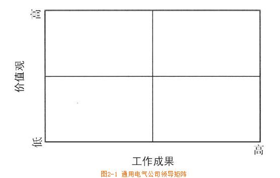 通用電氣公司建立了一個有效的矩陣,把價值觀和業績結合起來,分成四個象限(見圖2-1)。