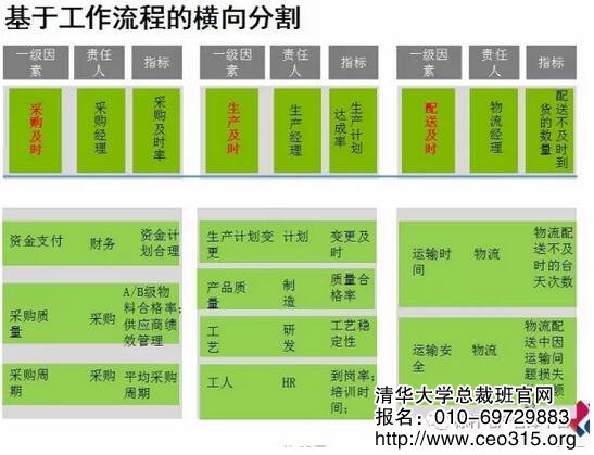 經常會有這么一個問題,許多人會問:(這是一家制造企業的案例),他說馮老師你看我們現在的問題是什么呢?比方說我們是送貨,我們考的這個配送部門叫配送的及時,如果他沒有完成怎么辦呢?那我們肯定是先問配送,結果配送它自己會有說法,配送部門說這個跟我沒關系,這個不應該罰,應該找生產的部門,他那個貨物都沒生產出來,所以跟我有什么關系;所以我們又去找生產部門,生產部門說這跟我沒關系,說我需要的原材料采購部門沒給采購出來,他不給我采購,我當然生產不出來;那我們又去找采購,那采購部門說了,這個跟我也沒關系,我們要付款,那財務部門不給付款;所以我們又去找財務,那財務說了這跟我也沒關系,我才付款,申請單早放在您桌上您就是不簽字,所以最后這事不了了之,不知道該罰誰了。那這種考核指標到底怎么辦、怎么處理就是按照我剛才給大家PPT大家去把它分解。