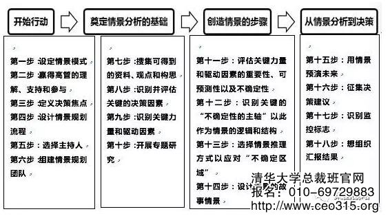 開發和運用情景規劃的步驟一共包括4大步,18小步。如下圖所示: