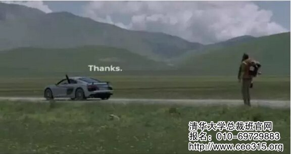 奧迪最近拍了一支很賤的廣告,一名男子背包旅行,一路上都沒有車輛經過,不得已跋山涉水疲憊不堪,更糟糕的是,馬上就要天降大雨,這時,希望出現了,一輛奧迪從遠處奔馳而來。