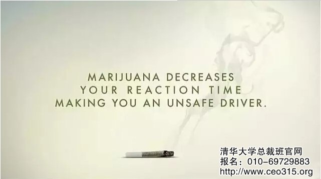 廣告語是:”在科羅拉多州醉駕最多的是因為大麻,為什么?因為大麻會影響你的反應時間。“