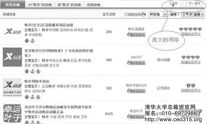 在線下實體終端,品牌連鎖店越多越好,這是企業實力的體現。事實上,特步公司在實體渠道上很有實力,2010年特步半年報披露,計劃到年底特步公司旗下的品牌零售店和旗艦店分別增加到7000家和40家。中國廣闊的地域也給特步公司的渠道擴張以巨大發展空間。不過,在沒有地理界限的互聯網世界里,而且還在同一家網上天貓商城里,出現那么多的同一品牌的專賣店,如何平衡它們的競爭關系,絕非易事。
