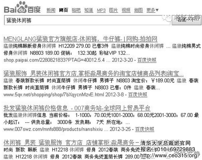 比如我們在索引擎框里填上猛狼休閑褲,就能跳出一串相關信息。