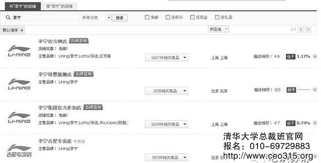 同樣以多店出現在天貓商城的李寧公司首席運營官郭建新說。“我們現階段要做的就是通過建立網上專賣店,樹立李寧公司的品牌形象,并且探索對網上零售渠道多種形態的管理和經營模式。”
