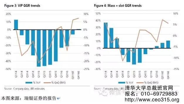 然而一個巨大的變化就是中產階級崛起后的消費升級。整個二季度澳門賭場的中產收入(Mass Market)已經同比3%正增長,特別是8月和9月帶動了整個博彩毛收入(GGR)的同比正增長。這是14年之后出現的巨大反轉。我曾經寫過多篇文章,認為中產階級崛起是未來必然趨勢。過去,去一次香港和澳門成本占收入比重比較高,今天這個比重大幅下降后,澳門的旅游屬性開始出現。其實沿海城市類似于上海,深圳,杭州等去澳門旅游的人數同比是下滑的。更多人選擇韓國,日本,甚至俄羅斯。但是內陸的中產階級起來后,大量的人開始去澳門玩幾把。此外,我們發現其實在賭場里面普通桌子玩的人,下注也非常大。許多人玩百家樂都是每一把按著上限在玩。一個晚上輸錢速度不亞于VIP包房里面的High Roller。但是這些人不需要太多中介費,毛利率反而更高。我們看到對于金沙,MGM這兩大賭場來說,普通老百姓的Mass Market收入占比已經越來越高。