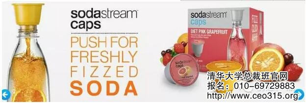 這家企業叫做Soda Stream,其產品是一款家用汽水機,可以在家里輕松地自制單杯的汽水,而且還可以跟多達60幾種的飲料濃縮液結合,在家調制出很多不同口味的飲料。其商業模式采取經典的“剃須刀-刀片”模式,家用汽水機作為“剃須刀”,便宜銷售,其盈利主要靠后續的耗材,比如蘇打粉,比如飲料的濃縮液。