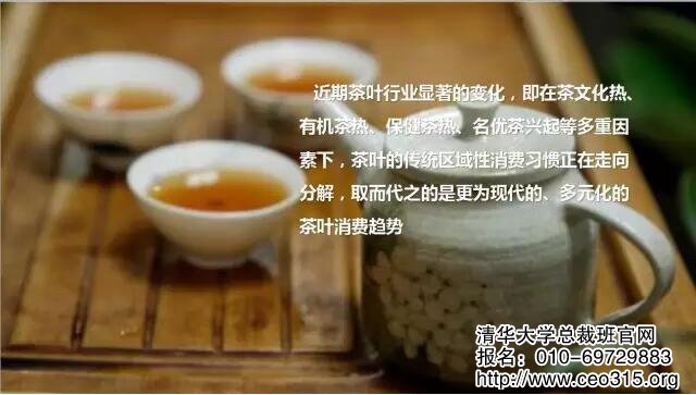近期茶葉行業顯著的變化,即在茶文化熱、有機茶熱、保健茶熱、名優茶興起等多重因素下,茶葉的傳統區域性消費習慣正在走向分解,取而代之的是更為現代的、多無化的茶葉消費趨勢。