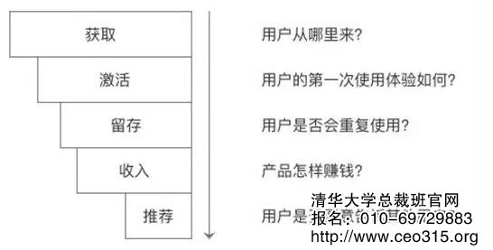 有收入和成本了,那就得規劃一些關鍵的數據指標,以幫助我們判斷產品的進展是否偏航。要注意,你所熟悉的很多數據度量方式是產品已經完成探索階段的數據分析指標。在探索階段,合適的關鍵指標是Dave McClure發明的“海盜指標組”,如下圖: