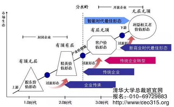 股東價值形態在改革開放初期大量出現,今天依然存在但數量越來越少;精英價值形態上世紀90年代后開始出現,成為了今天人們常說的傳統企業;利益相關者價值形態是工業4.0時代的產物,尚未到來;而客戶價值形態則是新商業時代的最佳企業形態,也稱之為新組織,西方一些先進企業已經進化到這個階段。從精英價值形態邁向客戶價值形態,是企業進化過程中的分水嶺,這是一次質的飛躍,中國企業轉型恰恰處于這個階段。