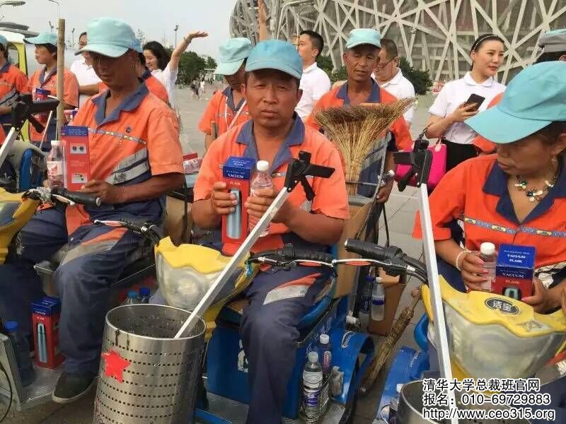 有這樣一群人,他們夏戰酷暑,冬戰嚴寒,常年奮戰在美容城市的第一線,身先力行“寧愿一人臟,換來萬人潔”的奉獻精神,為人們創造了一個優美舒適、干凈衛生的生活環境,值得我們每個人的尊敬與感謝,他就是我們身邊的環衛工人,今天清華工商班同學帶上水杯和礦泉水慰問這些勤勞可愛的人,獻一份愛心!