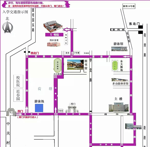 ③.清華東門、南門、照瀾院可租自行車,宿舍附近租自行車電話:51533516。出租車可從東門(正門)、南門進校,其它校門禁止校外車輛通行。