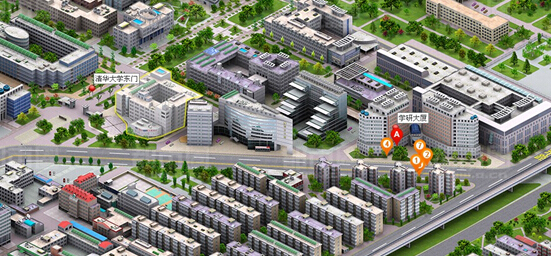 清華大學東門口右轉,直行一百米左右即可見學研大廈(清華大學出版社樓)。