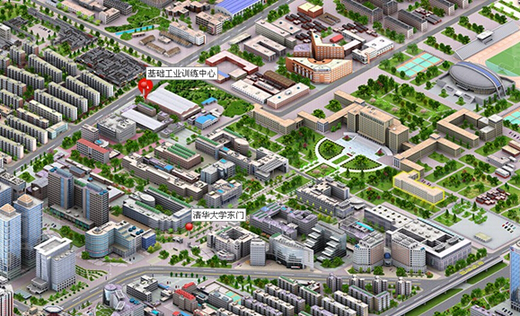 清華大學東門進入直行,第一個路口左轉,行至學堂路,右轉直行500米左右,右手邊即是基礎工業訓練中心。