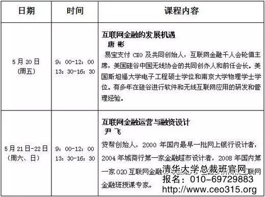 清華大學互聯網金融與企業融資高級研修班5月上課通知
