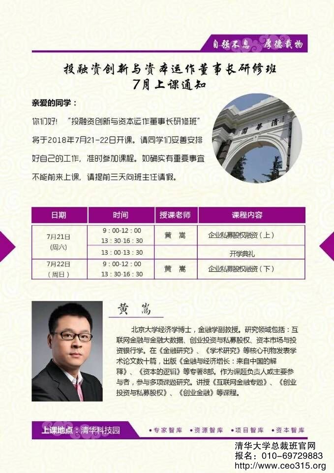 上課通知| 清華大學卓越商道與創新經營高級