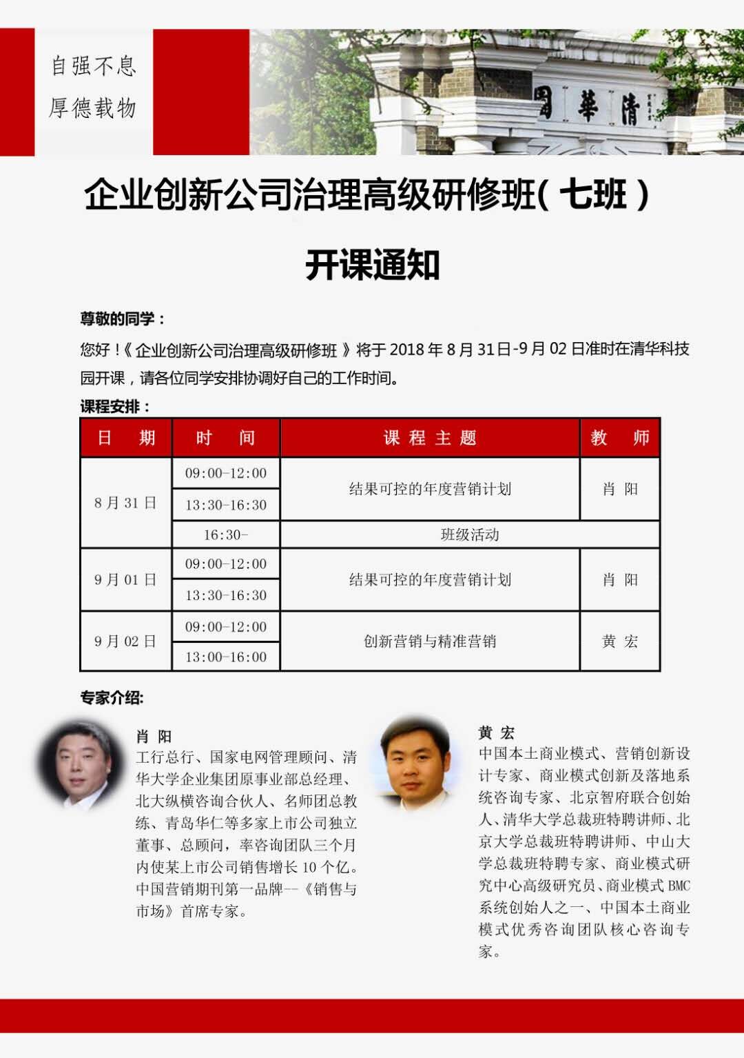 清華大學企業家研修中心2018年8月份課程表