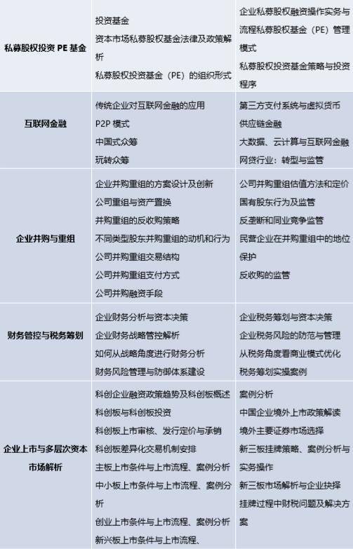 新環境下企業如何選擇自己的方向,定位戰略目標?如何利用資本市場實現公司的持續發展和快速增值?“金融戰略與融資創新實戰班”課程立足于幫助學員了解資本市場大環境,明確自身企業的資本戰略,掌握與資本市場對接的操作流程,并清晰把握資本運作過程中的財務和法律風險,儲備資本運營知識,以幫助企業通過資本市場實現快速增值。